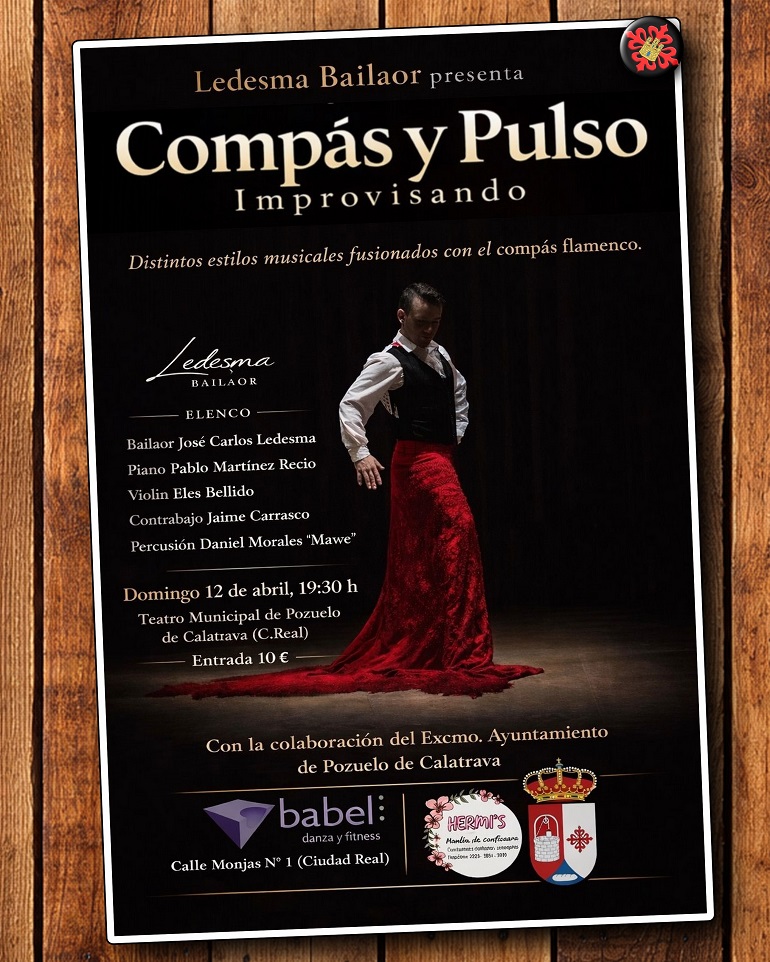 El Teatro Municipal de Pozuelo de Calatrava acogerá este domingo 12 de abril, a las 19:30 horas, el estreno de “Compás y Pulso: Improvisando”, el nuevo espectáculo del bailaor manchego José Carlos Ledesma, una propuesta artística que fusiona tradición, emoción e improvisación sobre el escenario.